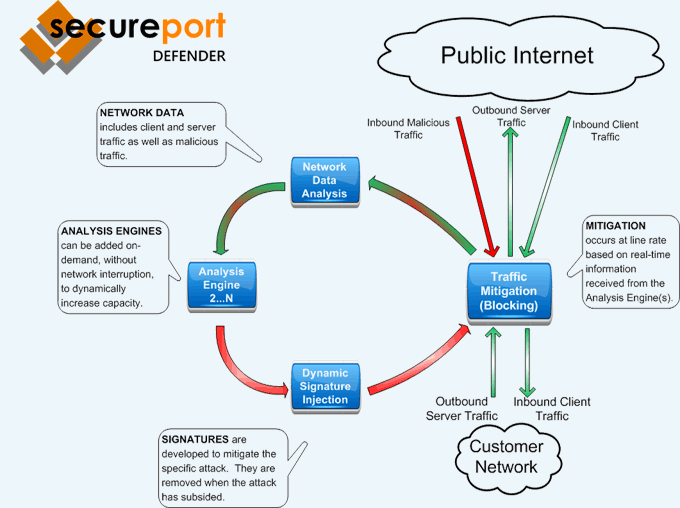 SecurePort Defender是由一组子组件,模块化安全供电。 这包括IPS,NBA的,DOS,和声望发动机检测,缓解和保护。 最终的设计允许SecurePort,以防止已知的漏洞,以及新出现的零日攻击。 该系统的运作独立于人类的干预和介入。